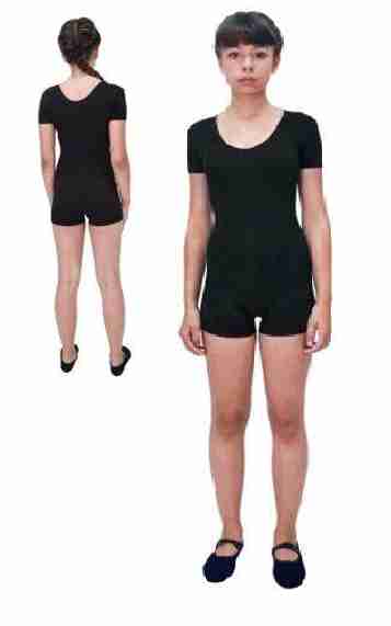 Комбинезон гимнастический унисекс. Укороченный, рукав - футболка. Состав: 88% хлопок, 12% эластан. Цвет: черный.
